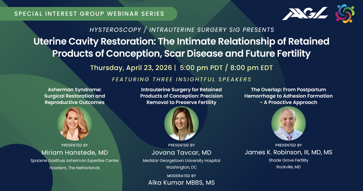 AAGL Hysteroscopy/Intrauterine Surgery SIG Webinar: Uterine Cavity Restoration: The Intimate Relationship of Retained Products of Conception, Scar Disease and Future Fertility